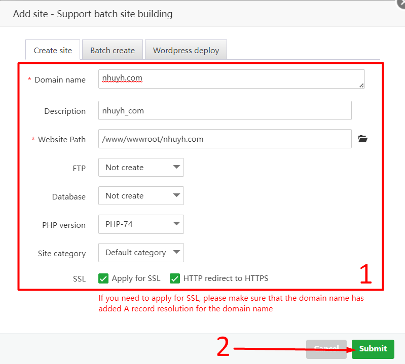 Cách thêm website vào aaPanel