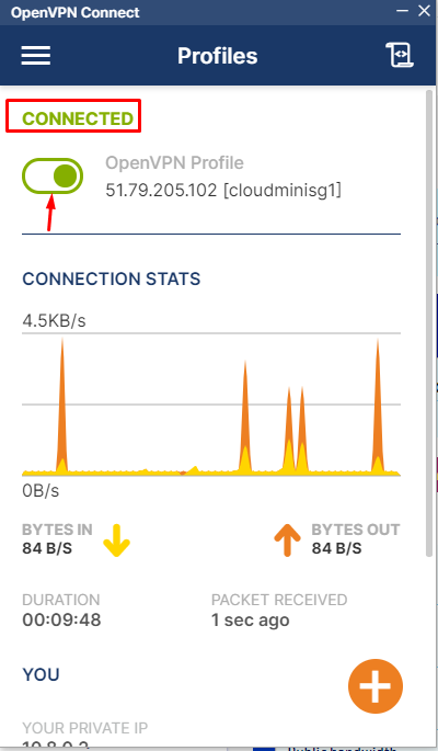 VPN hiển thì trạng thái Connected, tức là đã kết nối VPN thành công .
